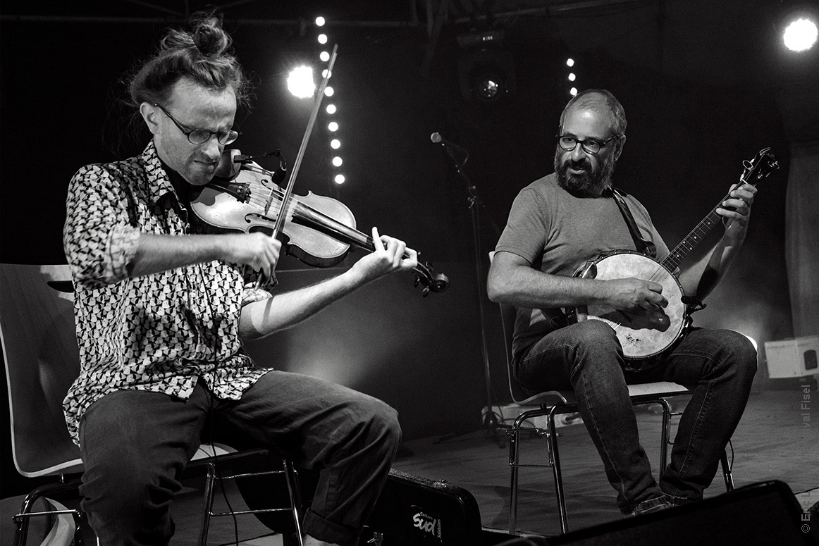 Faire danser, donner à entendre. Sortir des carcans en revenant à la source. Une musique instinctive et enracinée aux sonorités hors des usages et du temps. Un duo, un amour des instincts premiers des sonneurs, des maîtres à danser. Pas d’artifices, un son brut minimaliste, des bourdons aux grooves hypnotiques. Ne pas inventer la lune, elle existe déjà.